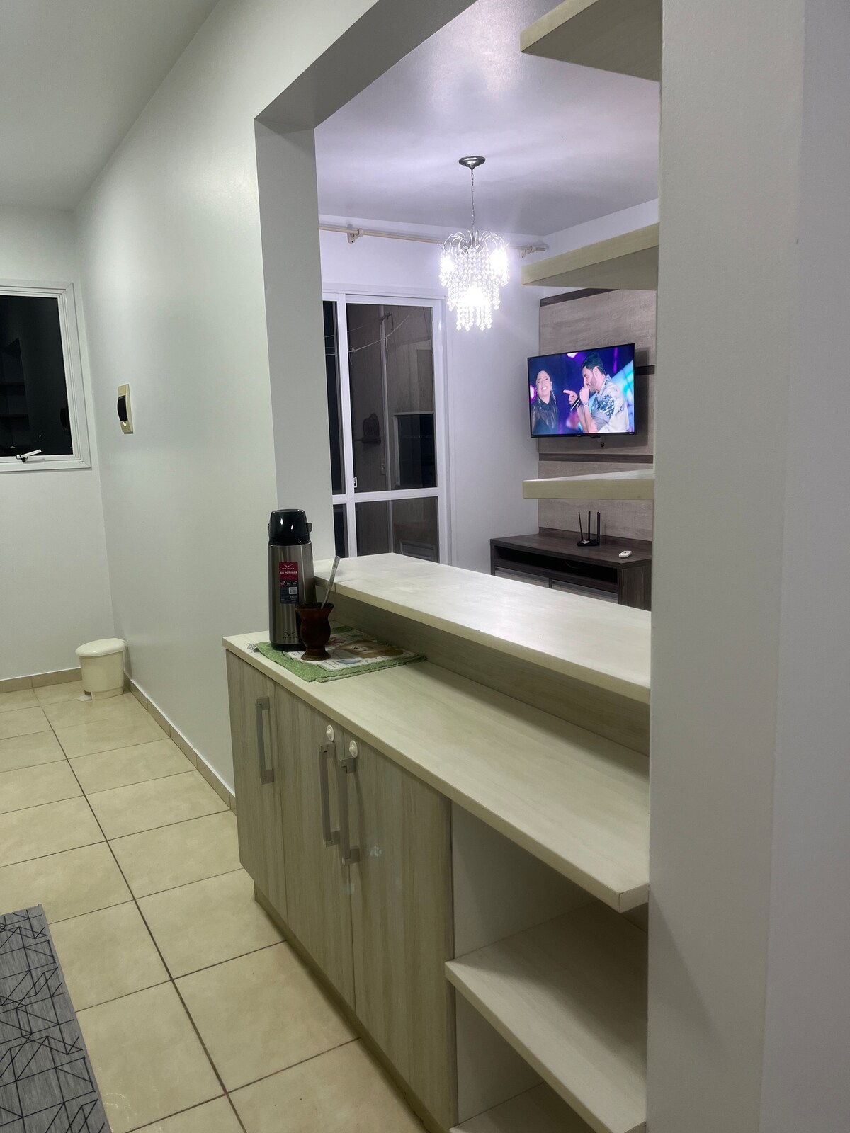 Fully planned apartment located in the center of Passo Fundo, near the Hospital de Clínicas, São Vicente de Paulo Hospital, FGV, shopping. Fully Complete. It has a garage, 2 air-conditioning units (hot/cold) in the bedroom and living room, 1 extremely comfortable box bed plus a sofa that opens into a double sofa bed and an extra double mattress. Wi-Fi, 2 smart TVs, one 40-inch in the living room and 32-inch in the bedroom, barbecue with grill, complete kitchen and other necessary items.