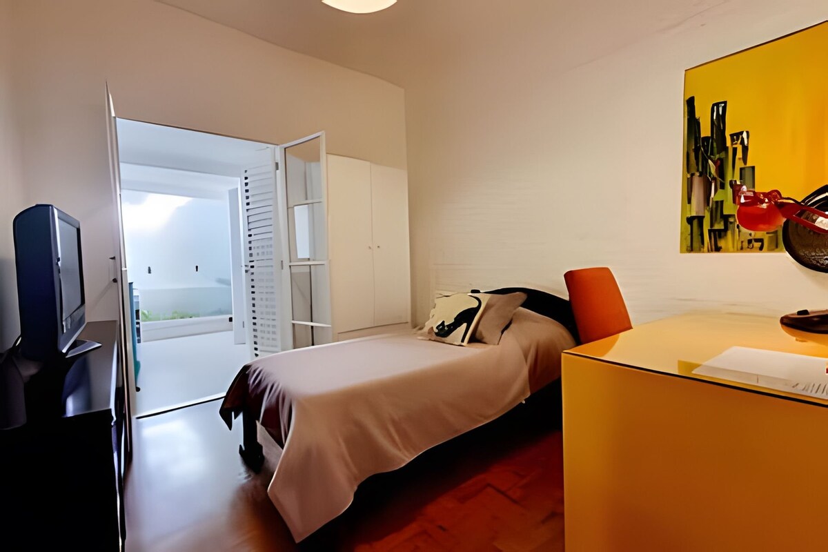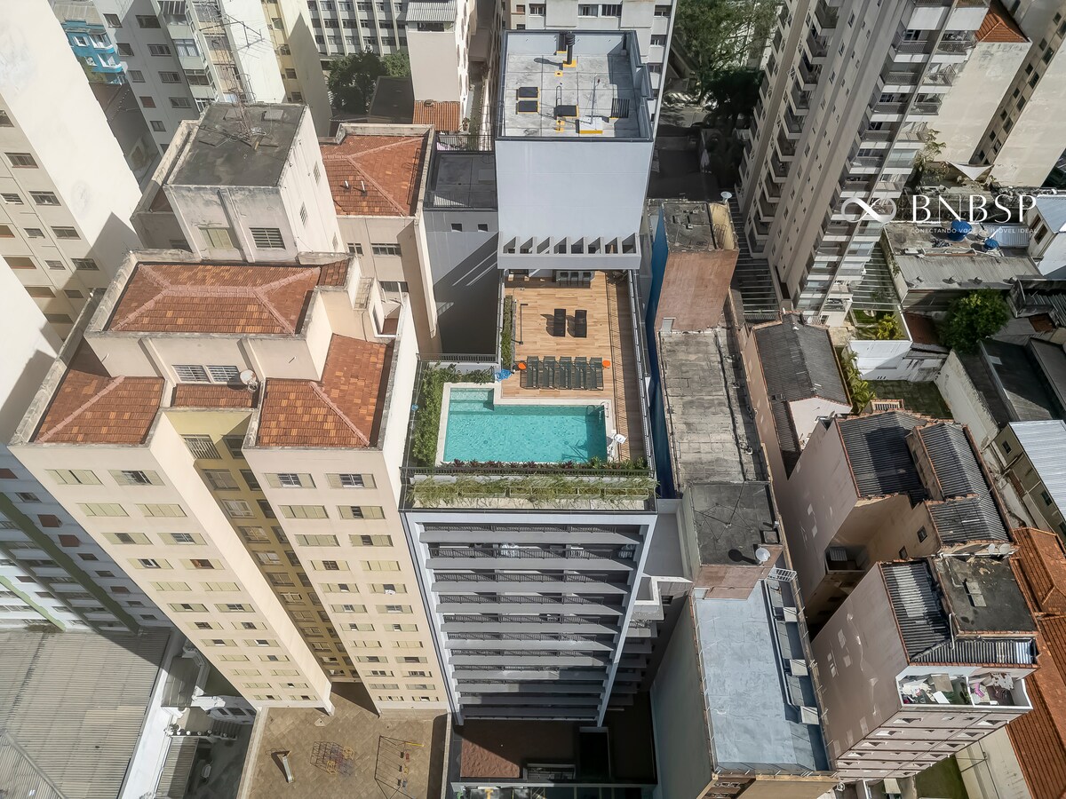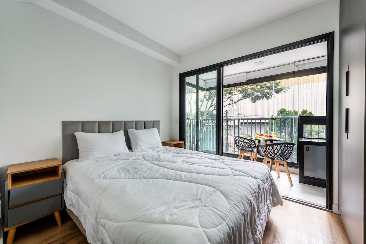 A 26m² studio with decoration signed by an architect in the heart of Jardins. Cozy atmosphere, ideal for people traveling alone, with friends, couples and families with children! We accommodate up to 4 guests with comfort and versatility We are located 3 minutes from the famous R. Oscar Freire: safe, full of restaurants, shops, pharmacies and markets In a central region, ideal for those who also want to explore important points of the city, such as Ibirapuera Park, Faria Lima Avenue, among others