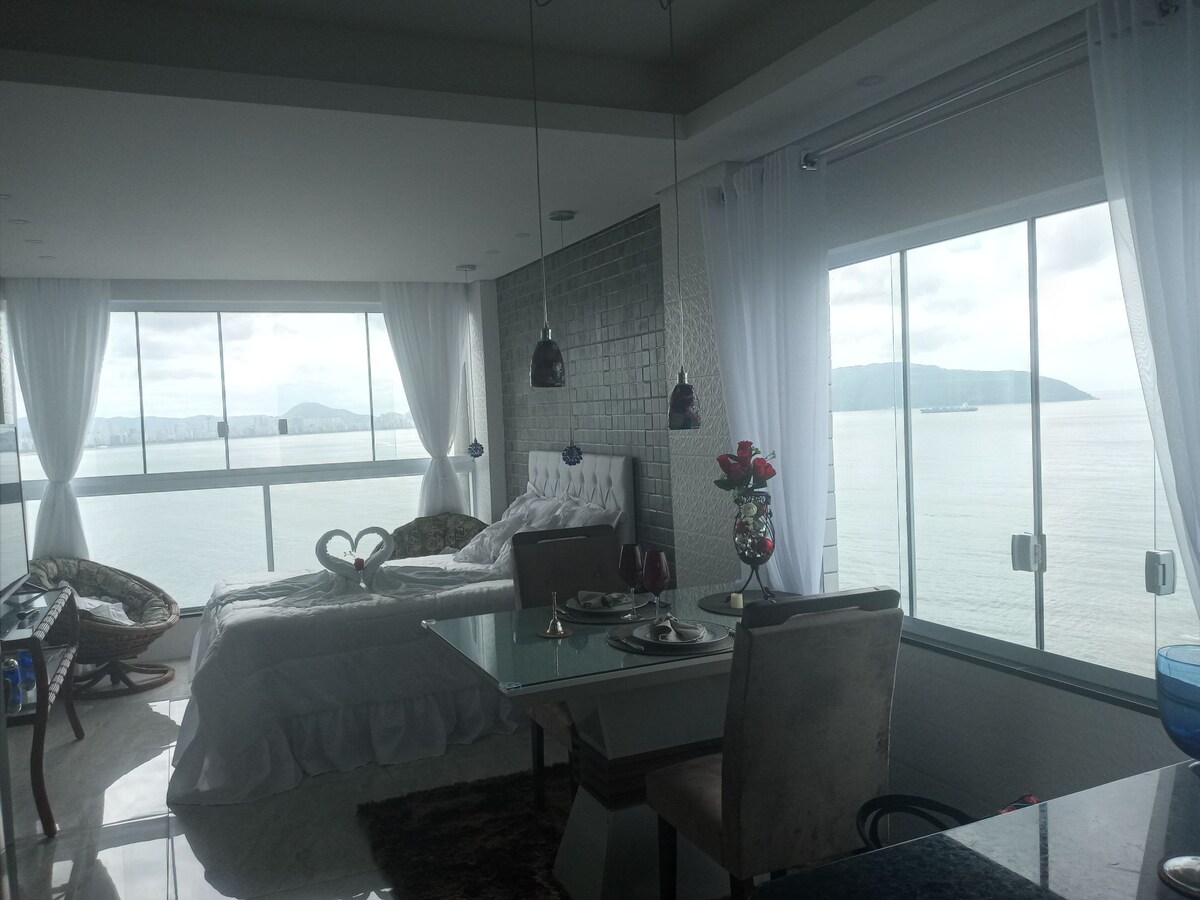 Come and experience staying over the sea, with an incredible view, in a cozy, comfortable, clean, safe and complete apartment, with everything you need to relax and enjoy the view from the window. Located at the top of Porchat Island, in SV. Air-conditioned apartment, double box bed, sofa bed, Smart TV with Netflix access, high-speed internet, full kitchen with all the necessary utensils to prepare meals, and enjoy peace and tranquility.