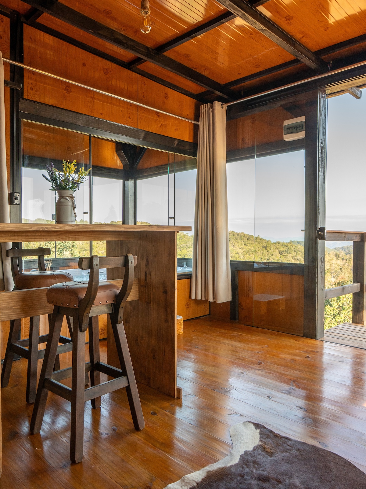 Wake up to the birdsong, breathe the fresh mountain air, and immerse yourself in unique moments of peace and comfort. Our chalet was designed for those seeking a complete experience of rest, romance or connection with nature – without giving up comfort. Relaxing bathtub overlooking nature and hot water. Comfortable double bed + sofa bed for up to 3 guests, with bathtub, kitchen with all essential utensils, quality towels included, Wi-Fi, Smart TV, balcony with view.