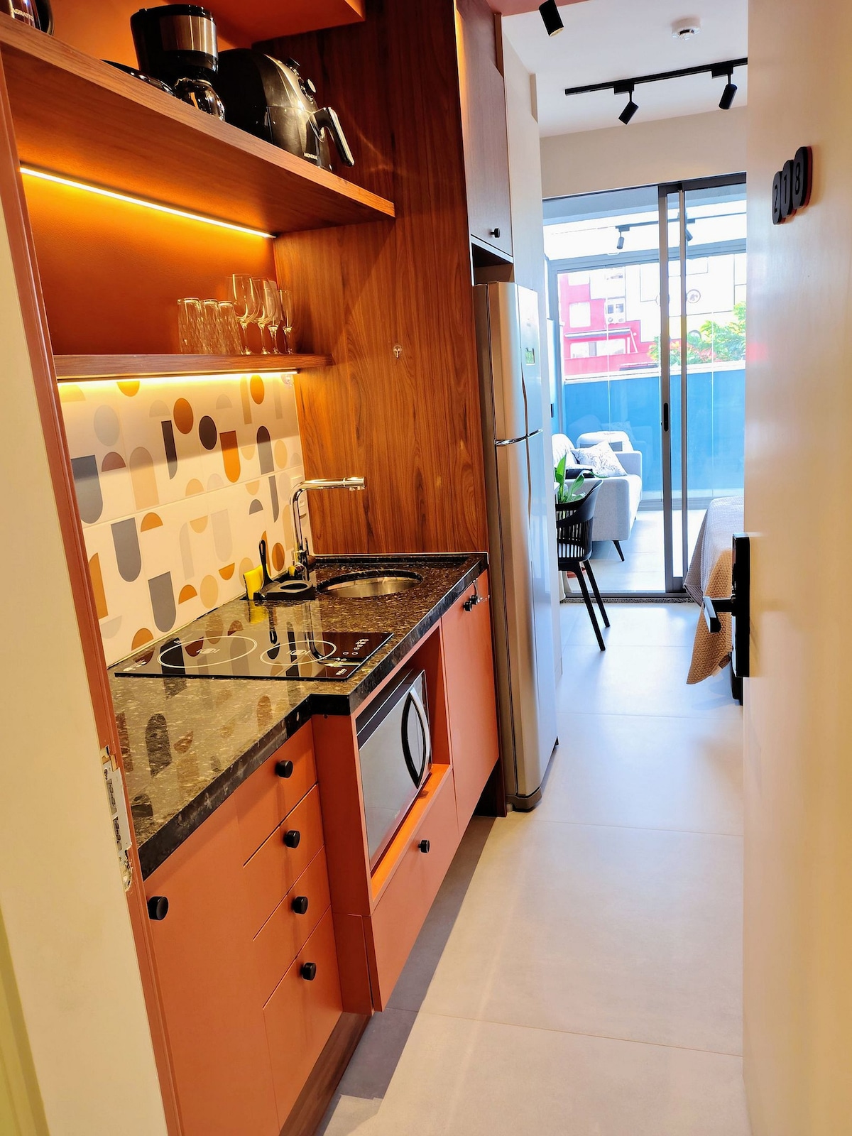 Luxury Studio on Rua Oscar Freire Modern, sophisticated and complete, on the most famous street in São Paulo for luxury stores. Studio on the 24th floor, facing, with magnificent view of Av. Paulista. Well equipped, with 55-inch TV, Vivo Fibra 200 Wifi Internet, cable TV, silent air-conditioning, coffee maker, cooktop and minibar, automated black-out curtain, portable clothes steamer, kitchen utensils, hairdryer, soft sheets and towels, soap and shampoo/conditioner kit.