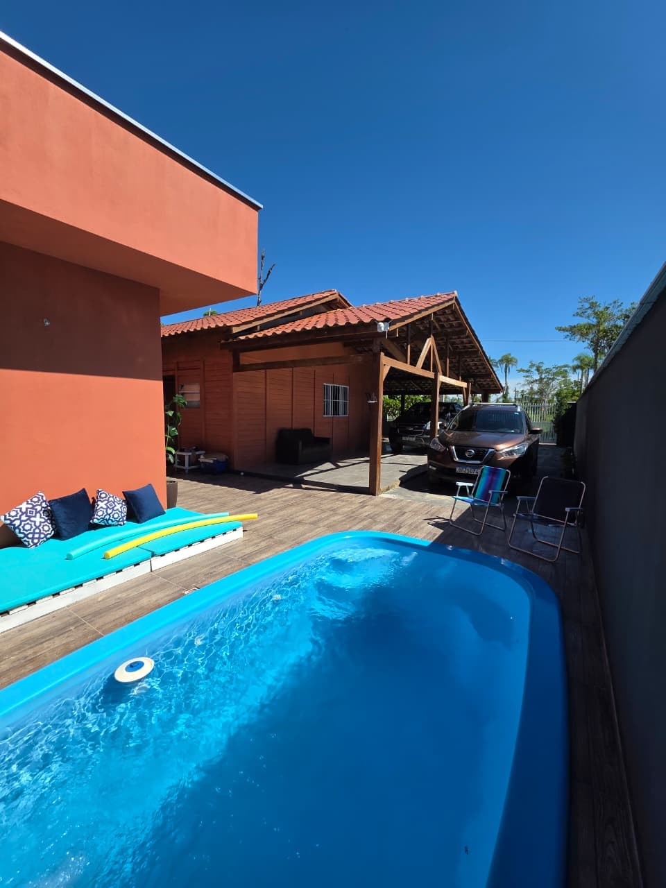 Cozy and surrounded by nature for up to 8 guests, it has: 3 bedrooms, 1 of which is an en-suite air conditioning, Wi-Fi 2 dining areas (internal and external), kitchen and balcony with barbecue grill Ideal for those who like to fish! Through the back street it is possible to access a beach (50 meters away) Parking: 2 car spaces Some distances: 5 km to Fort Marechal Luz 12 km to Enseada 15 km Prainha 20 km Historic Center
