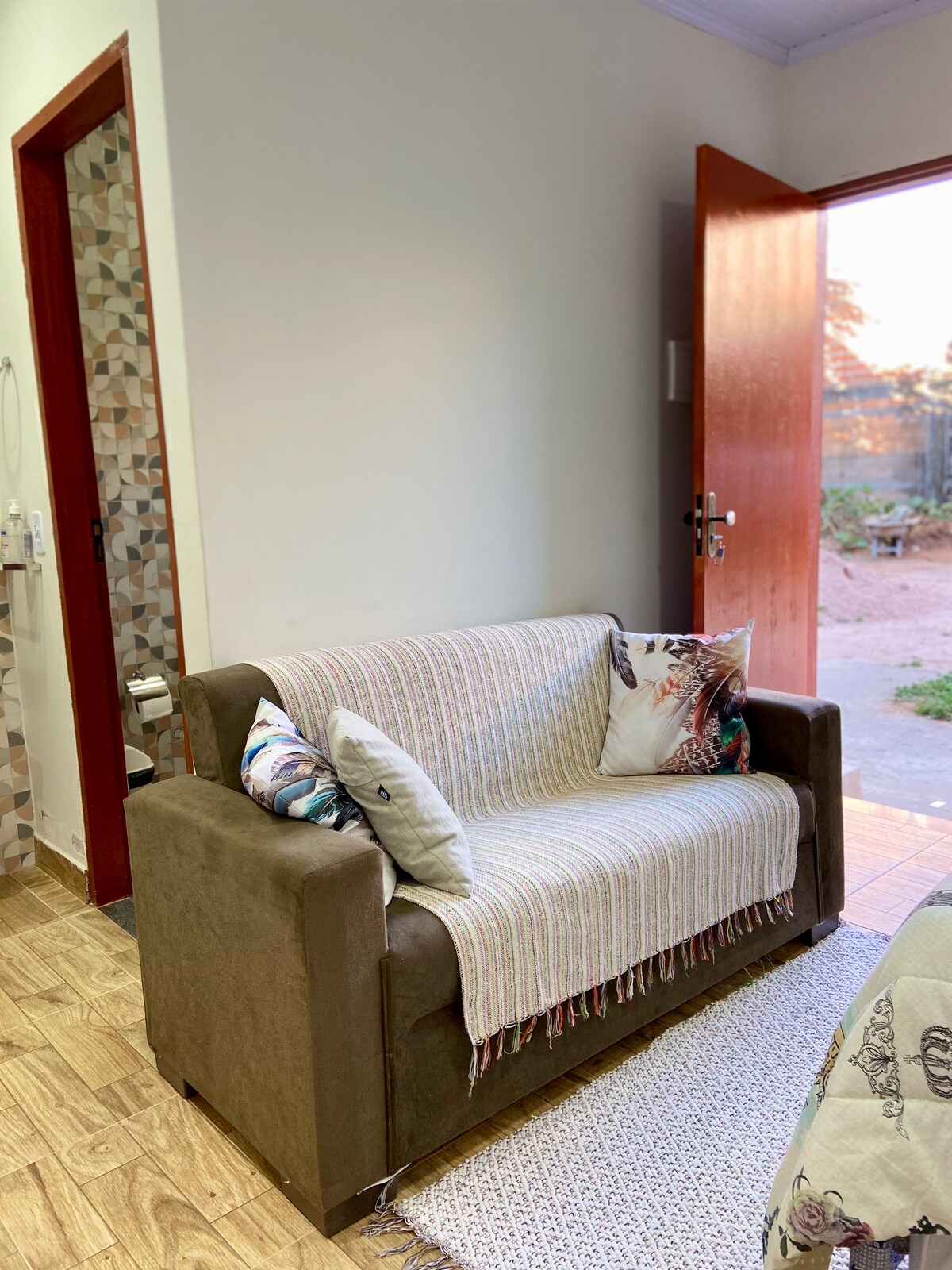 Our space is open to diversity, travelers, home officers, and families of all genders, colors, or backgrounds. The studio is located in a central area, in the back of the house with 2 nearby markets: 1 bunk bed (2 single beds) +1 single bed 1 double bed. 1 gas stove 1 Minibar Cooking utensils. Bathroom with hot water, external. shared with the owner. Indoor parking Large shaded backyard.