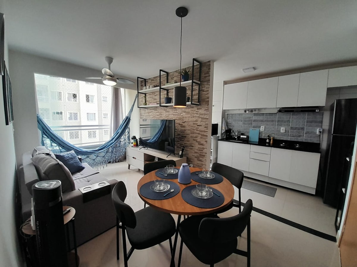 Enjoy comfort and elegance in this modern apartment, just a few meters from the beach! With charming decor, a cozy space and a full kitchen, it is the perfect getaway for relaxation. Enjoy natural lighting, a sophisticated dining area, and a well-equipped environment for your stay. Ideal for couples, families or remote work. Come and enjoy unforgettable days with all the comfort!