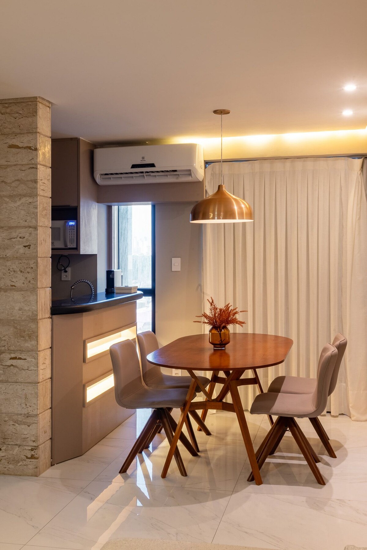 Modern, comfortable and well located, Studio no Calhau is perfect for those seeking practicality and well-being in São Luís. With elegant décor, an equipped kitchen, a cozy bed, Wi-Fi and air conditioning, the space offers everything for a complete stay. Close to beaches, malls and restaurants, it is the ideal place to relax and enjoy the best of the city.