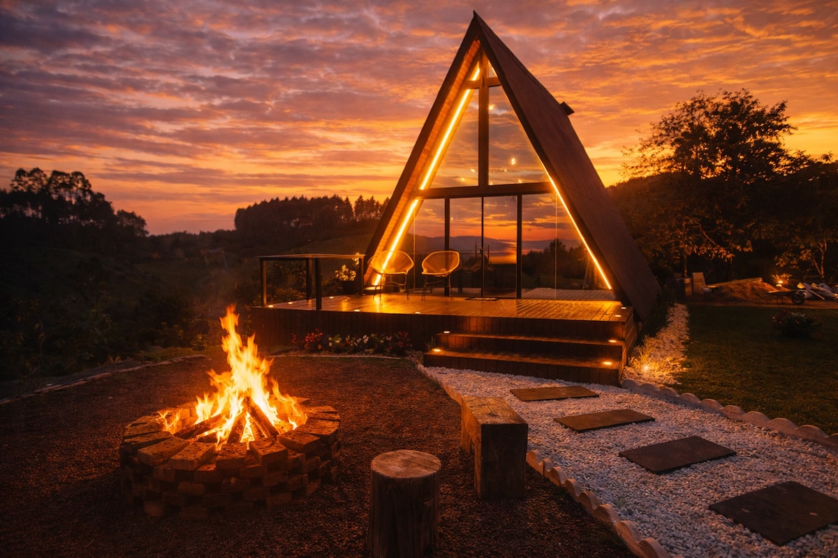 Enjoy an unforgettable experience in the midst of nature at the Aconchego Cabin at the Grummel Wald Retreat! 🌿✨ Situated on a 19-hectare rural property, surrounded by lush landscapes and plenty of tranquility, the cabin offers a privileged view of the mountains of the Serra do Tabuleiro State Park — the perfect setting to slow down. On the private glass-covered deck, you can watch the sunrise and experience unique moments of romance, rest and connection with nature.