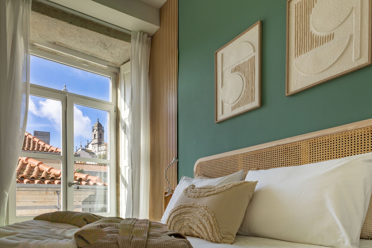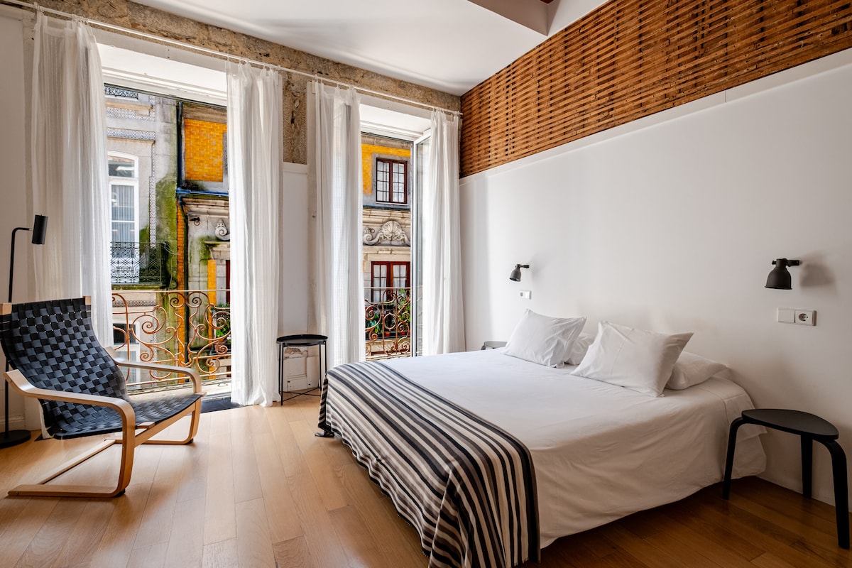 Totalmente renovado em 2022, hospeda 2 pessoas em quarto + 2 pessoas em sofá-cama. Proporciona belíssimas vistas da zona histórica, é espaçoso, luminoso e muito charmoso e elegante. No coração do centro histórico do Porto está localizado na charmosa e popular Rua Ferreira Borges. Calmo, relaxante e um bom ponto de partida para explorar confortavelmente a cidade a pé. Está perto da Ribeira, da Torre dos Clérigos e da Estação de Comboios de São Bento, este será o local perfeito para a sua estadia.