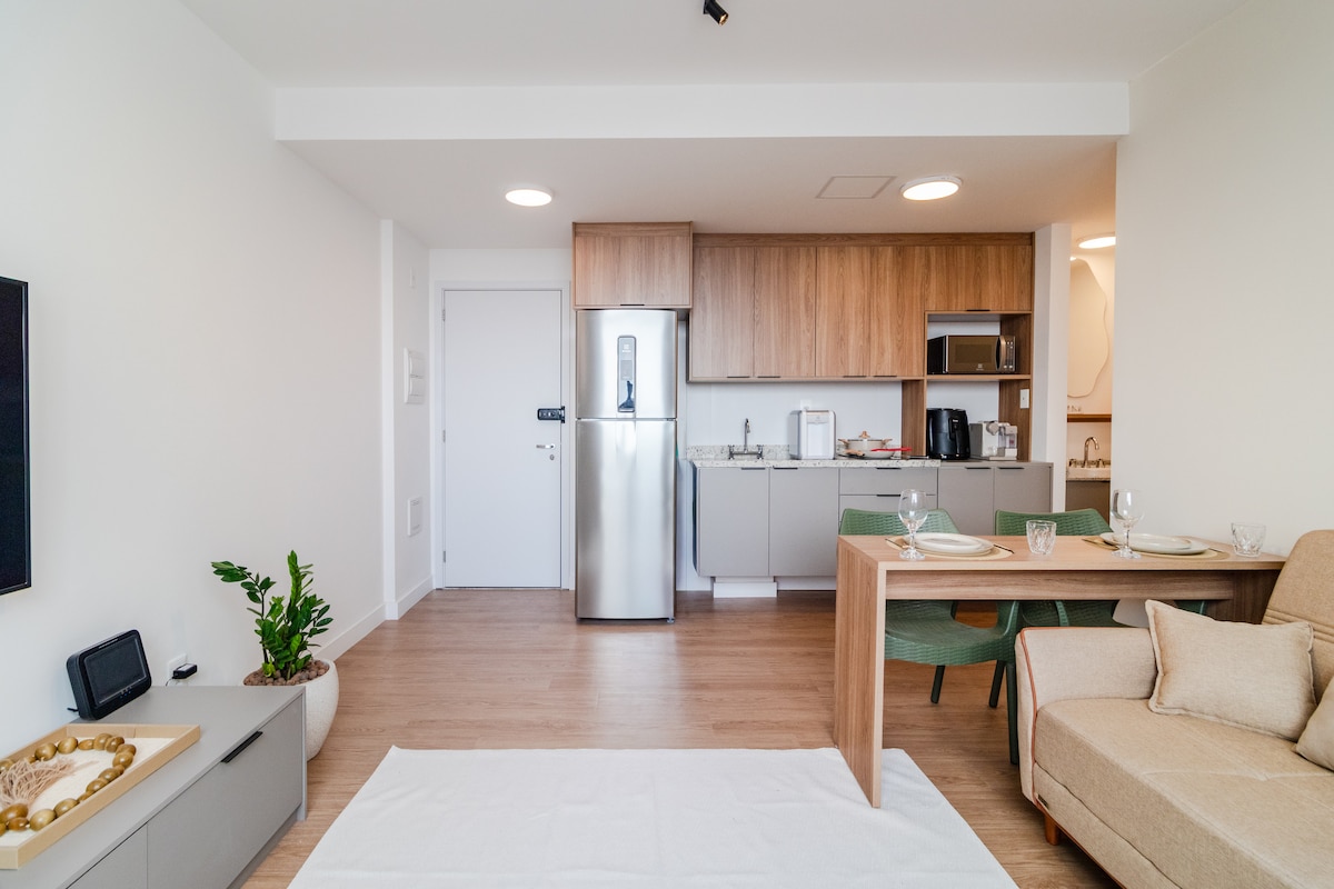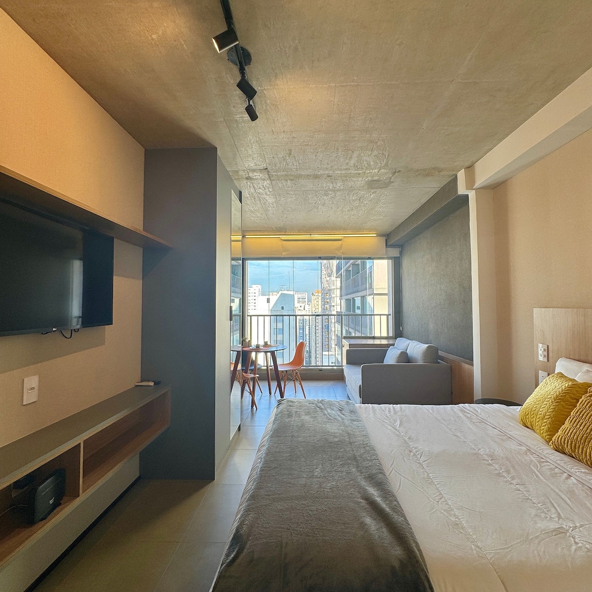 A Refuge in Moema — With Mezzanine and Sunset! Welcome to your new favorite place in São Paulo. This Studio is designed for those who appreciate comfort and a cozy atmosphere. Natural light floods the space in the late afternoon, creating a perfect setting to relax and enjoy a wide view illuminated by the sunset and a unique experience. Enjoy this brand new and stylish space! Whether traveling for work, study, leisure, or a romantic stay.