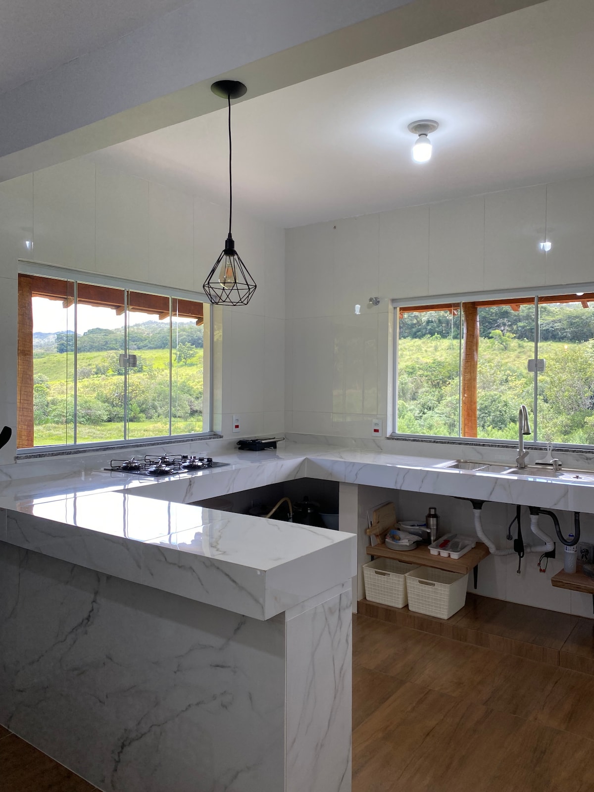 🏠House on the ground floor of the Townhouse at @chacara_filhosdaterra. It has: ✅Shared pool; ✅Soccer field; ✅Hammock area; ✅Full kitchen; ✅Living room with SMART TV; ✅ Wifi available; ✅ Hammock hanger; ✅ Portable barbecue grill; ✅ Secondary kitchen with wood stove; ✅Bed linen, sheets, blankets and toilet paper; and ✅ All household utensils. ✳️The house accommodates 7 people 🔴 We do not provide bath and face towels, soap or shampoo. * The photos are from the downstairs house.