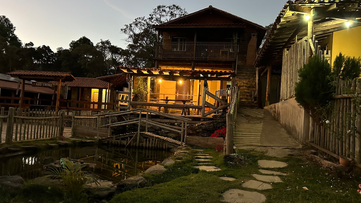 *FERIADOS RESERVA P/ NO MÍNIMO 4 PESSOAS. CORPUS CHRISTI/STL MÍNIMO 3 DIÁRIAS E 4 PESSOAS! Venha ter uma experiência mágica em meio a natureza, com privacidade e visual incrível de montanhas. Casa simples e com um quintal cheio de história. Área de recuperação ambiental, com ribeirão privativo, água de nascente e muita paz. O Sítio fica na APA de São Thomé, a 400 m da Cachoeira da Lua e a 7,5 km do centro. Fácil acesso para diversos pontos turísticos.