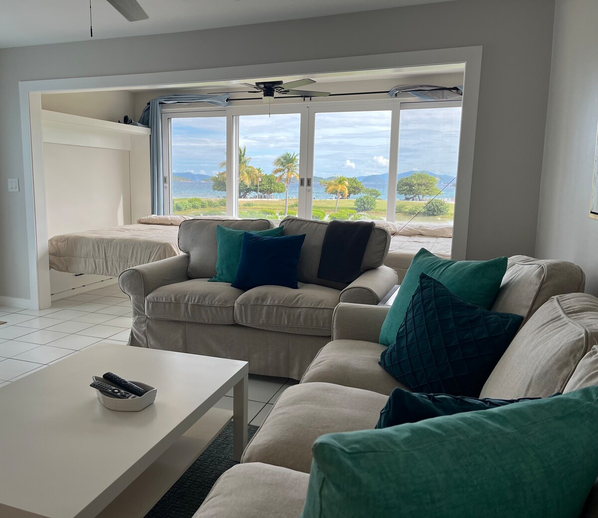 Beautiful ocean side condo steps from the breath-taking turquoise Caribbean waters. Spectacular views of St. John Island and the British Virgin Islands. Sapphire beach is a popular destination, known for it's snorkeling, beach life, kayaking, beach side bar and coffee shop. Located on the eastern end of St. Thomas, one mile from Red Hook which provides many conveniences such as shopping, delicious dining, bars and activities. Note: 1 king bed, 1 queen size sleeper sofa.