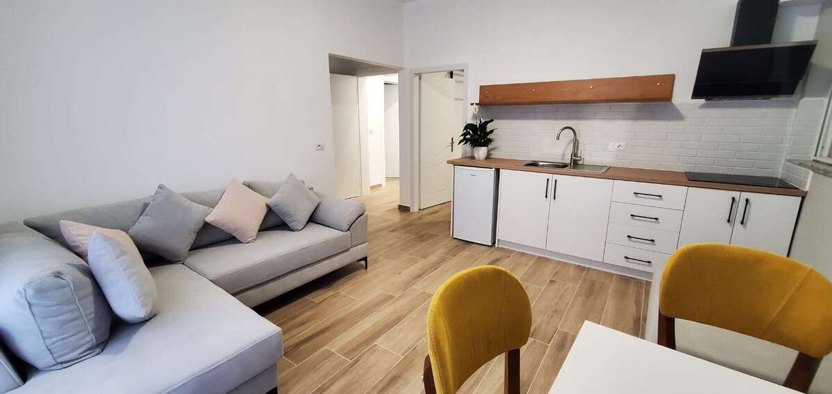 Central one bedroom apartment features a comfortable living room and a fully equipped kitchen, making it perfect for a couple, small family, or group of friends. The bedroom includes a double bed, and the living room offers a sofa that easily converts into another double bed. We are happy to arrange the layout of the apartment in advance based on your s needs. The location is unbeatable, just 150m from the seaside promenade and city beach, and only 250m from the city center and main bus station.