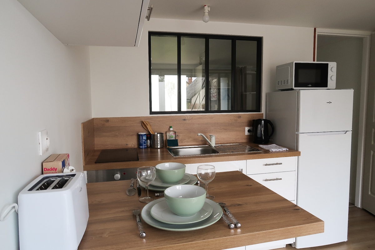 Fully equipped and decorated studio for a pleasant stay with independent access through the garage of the house. Private terrace with garden for sunny days. Close to Banjan Park. The tram line is a 10-minute walk. Bus line in adjacent street. Old Mans and Place des Jacobins - (Market: Wednesday, Friday, Sunday), the city center, all within a 10-minute walk. Coulaines swimming pool is also nearby.