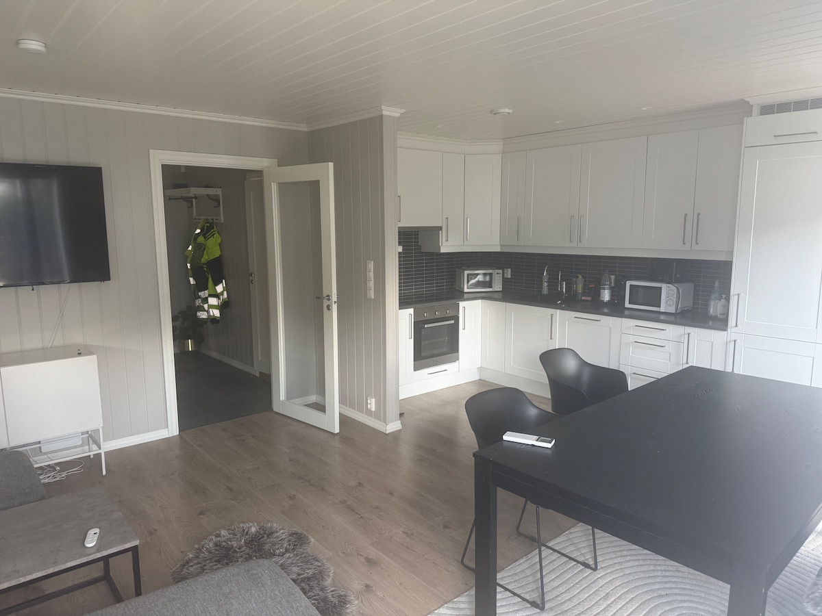 Welcome to our cozy basement apartment in central Skjeberg! Only 500 m to the nearest supermarket, 2.5 km to the E6, 2 km to Høysand beach, and 13 km to the Swedish border. The 50 m² apartment has a private entrance, parking, a 180 cm bed with double duvet, a 75” TV, free Wi-Fi, and electric car charging (NOK 100). Ideal for couples, solo travelers, or business guests. We look forward to hosting you! ☺️
