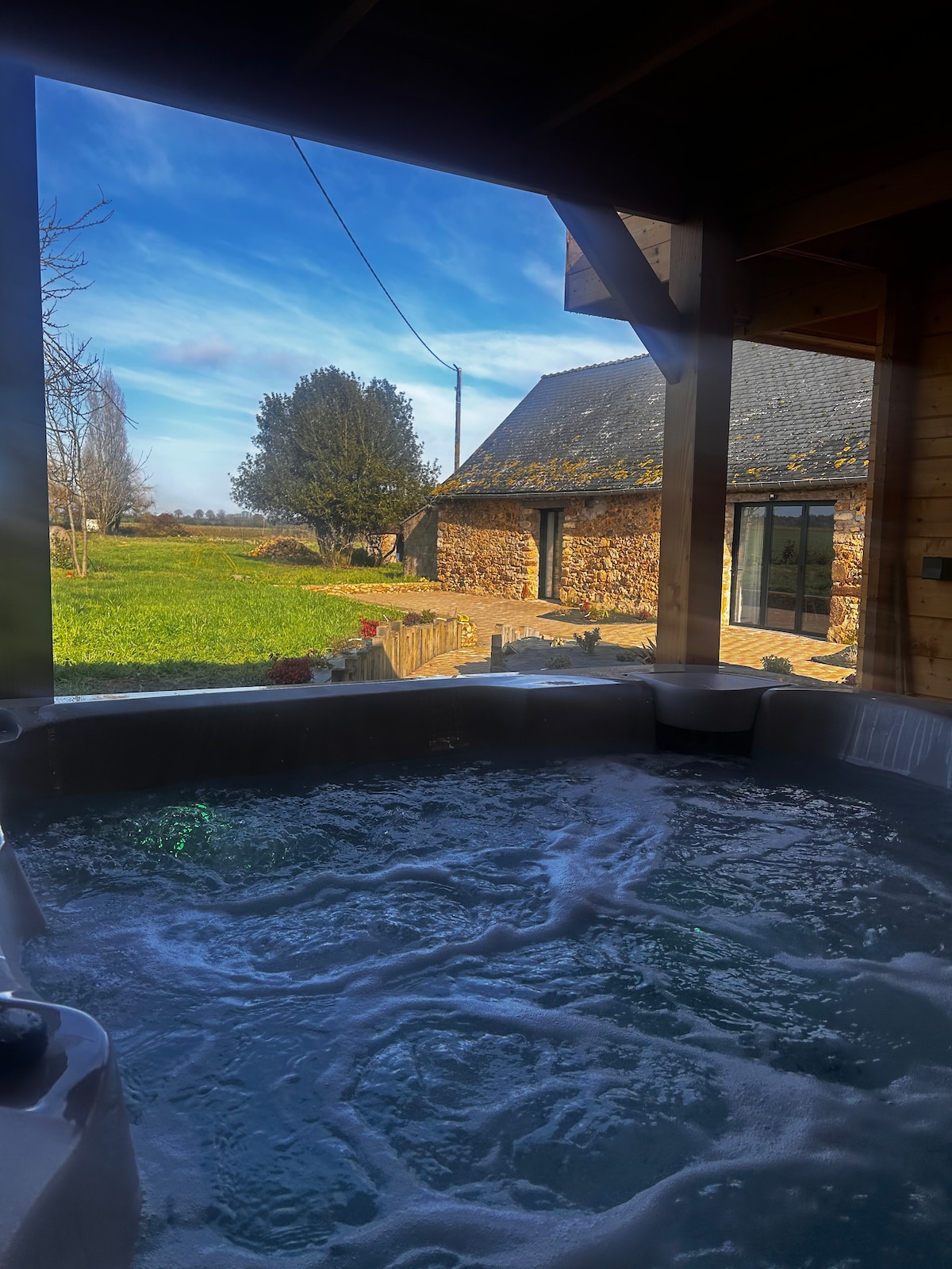 Charming stone and wood farmhouse the hot tub, sauna in the accommodation, fireplace (wood available), stove and piano will allow you to have a pleasant stay. Spacious room with 160 bed and sofa bed in the living room Sheets and bath sheets provided Netflix fiber a piano is also available for music lovers... the splendid village of Saint Ceneri is 3.5 km away, that of Saint Léonard des Bois 5 km away. Beautiful hikes, biking or kayaking, tree climbing