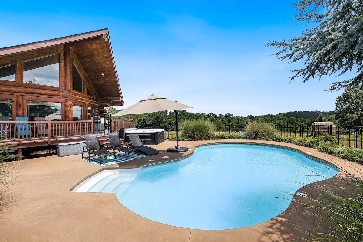 Hardwood Chalet- Pool and Hot tub, great views