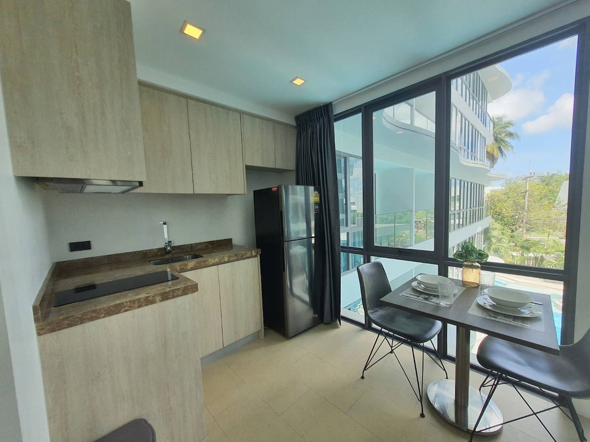 ROOM - on 34 floor 36 sqm 1 bed room 1 bath 1 dining/living room. - 1 king size bed (6 ft.) 1 Sofa bed (5 ft.) - built in kitchen with hood & electronic cooker - 2 air conditions, refrigerator, microwave, kettle FACILITIES - direct Private beach front,swimming pool - pool with slider, fitness - roof top sea view restaurant Very convenient location, local food,convenient store(7-11), laundry service. Taxi, money exchange, massage just opposite