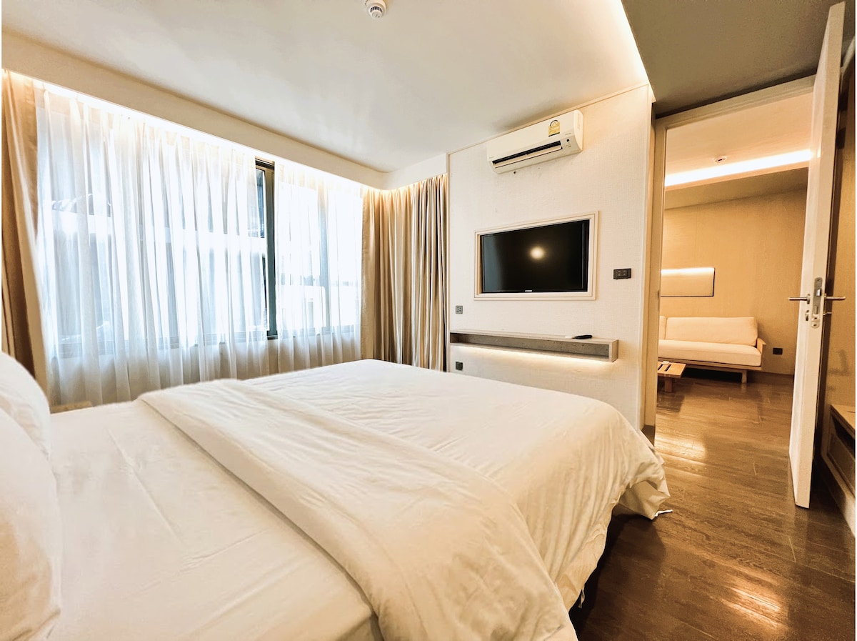Welcome to your newly renovated 65 sqm beachfront apartment at Avatara Condominium — one of the best locations in Jomtien, only 50 meters from the beach. This spacious and stylish suite features: • Large living room with comfortable seating • Fully equipped kitchen with everything you need • Washing machine for long stays • Smart TV with Netflix • High-speed internet • Big bedroom with a soft, high-quality bed • Two balconies — one from the living room and one from the bedroom