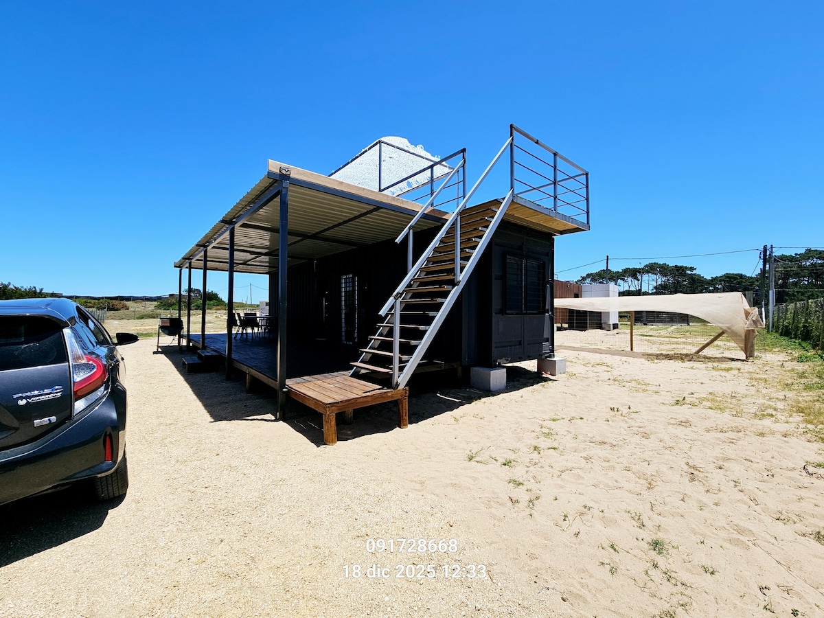 Designer beachfront cabin between Piriápolis and Punta del Este. Wake up to the sound of the ocean and step straight onto the sand. Perfect for a romantic or adventure escape. Cozy wood-burning stove, bonfire under the stars, and a fully equipped kitchen. Includes linens, towels, and amenities. A peaceful seaside retreat to relax and reconnect with nature. Near the cabin there's an abandoned complex, but there's a caretaker living there and it's very safe.