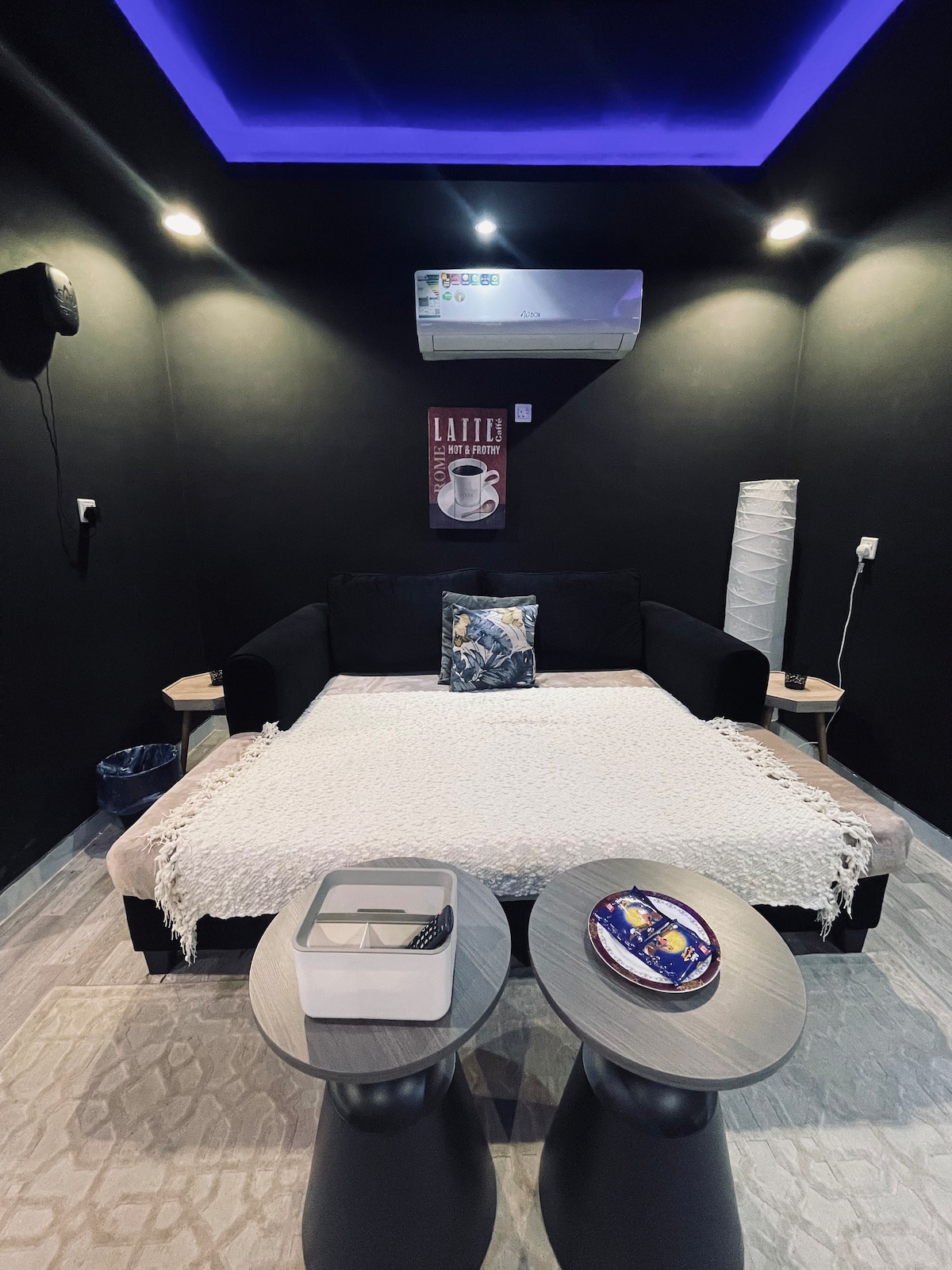 Elegant studio in Al Aqiq District, fully equipped with all amenities, featuring smart entry and a prime location with easy access to Riyadh’s key destinations. 8 minutes from Boulevard 8 minutes from beast land 7 minutes from KAFD 18 minutes from the airport 6 minutes from King Saud University Unlimited High-speed 5G internet available 70 inch screen