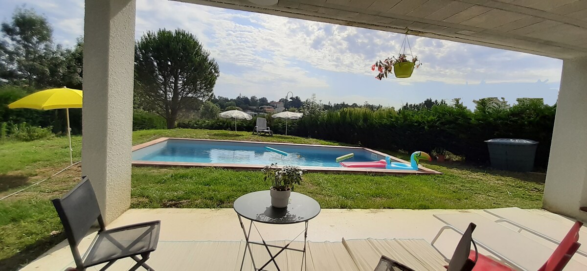This house welcomes you for either a short or a long stay (40% discount for stays of more than 28 days). 20 minutes from Toulouse, very nice recent air-conditioned house of 160 m², single storey, with heated swimming pool from 1 May to 30 September, and landscaped garden.