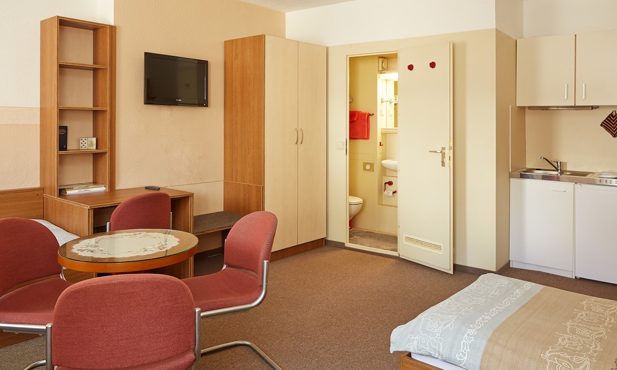 The room is equipped with a bathroom (shower + toilet, hair dryer and cosmetic mirror), LED TV, desk, room safe and internet access via W-LAN. We have children's beds and baby beds available for our little guests. As a house service, these are included in the room price. Sun-seekers can use our spacious balcony with sun loungers. Our rooms can also be easily reached by guests with restricted mobility via a stair lift.