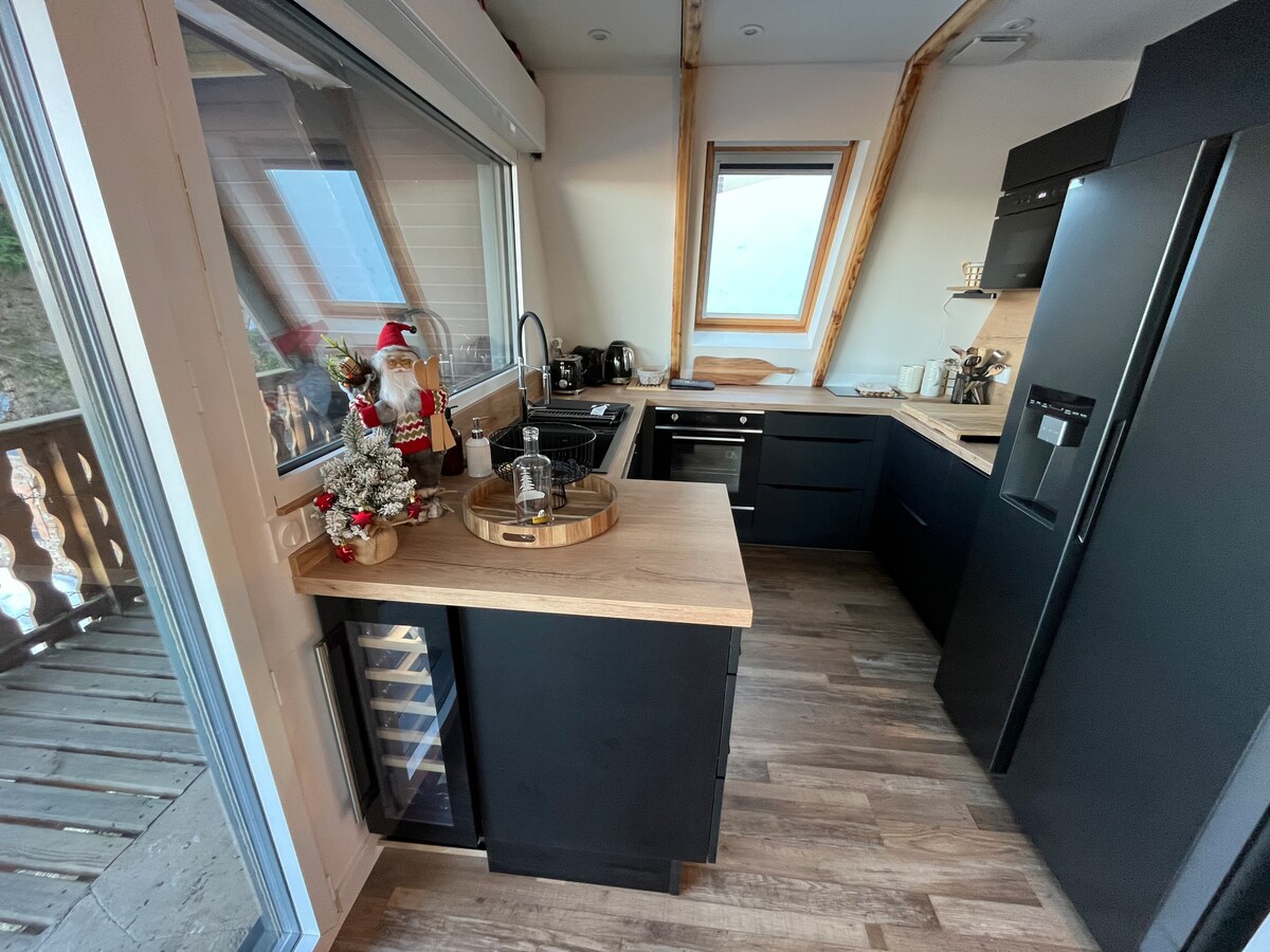 Chalet bois, aux lignes sobres et contemporaines, alliant confort moderne et décoration chaleureuse avec vue imprenable sur les montagnes, dans un petit hameau de 5 chalets haut de gamme, placés dans un espace privilégié de notre petit camping, point de départ de multiples randonnées & activités. Une séance (1h30) offerte à l'Espace Bien-être, espace bien distinct du chalet, avec SPA et SAUNA entièrement privatisé. Ne sont pas compris, le linge de lit et de toilette. Possibilité de location.