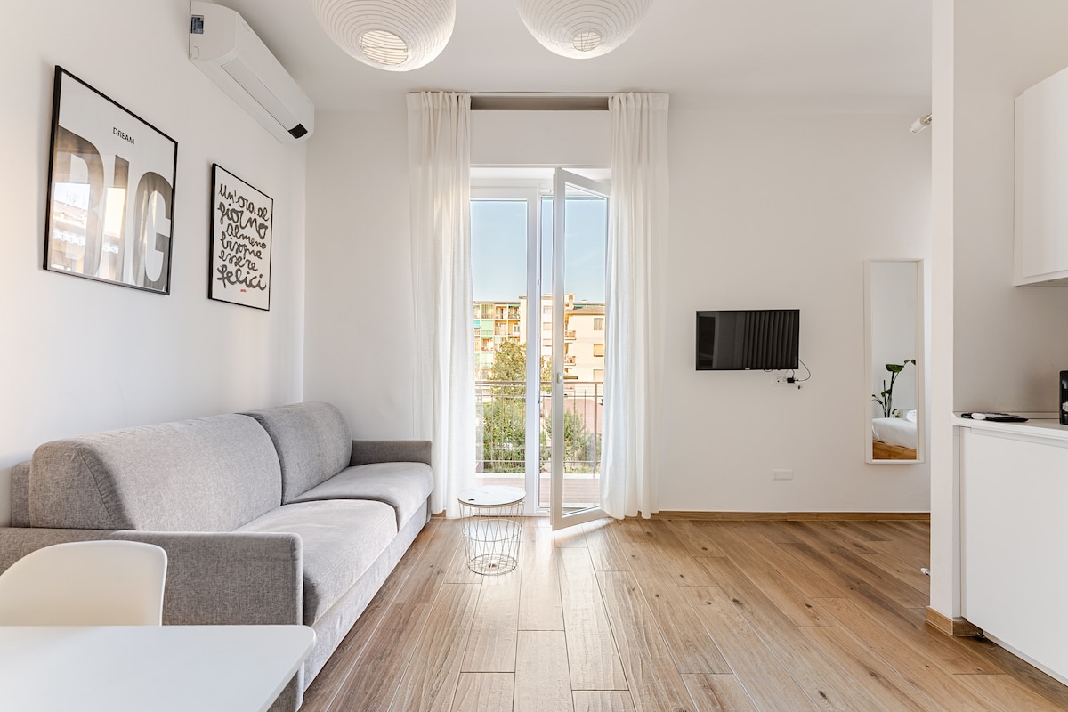 M4WHITE is an elegant, fully renovated studio apartment in Scandicci, just a few minutes from the tram that provides a quick connection to the centre of Florence. The ideal solution for exploring the city stress-free, staying in a quiet and well-connected area on the outskirts of the Chianti region. Ideal for both tourism and smart working, thanks to the LAN connection and fast Wi-Fi, a dedicated workstation, and spaces designed to ensure comfort and functionality.
