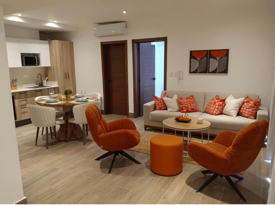 Modern 1BR apartment in Cap Cana, located in the Vermare building at Las Iguanas Residences. Enjoy ocean views, natural decor, fast Wi-Fi, fully equipped, and access to a private gym, 2 pools, a kids' pool, in front golf course ,and green areas. Just minutes from top beaches, Green Village, Scape Park, and Punta Espada Golf. Ideal for couples or remote stays in paradise. This stylish 1-bedroom apartment in Vermare Residences, Cap Cana, offers 80 m² of comfort and design.