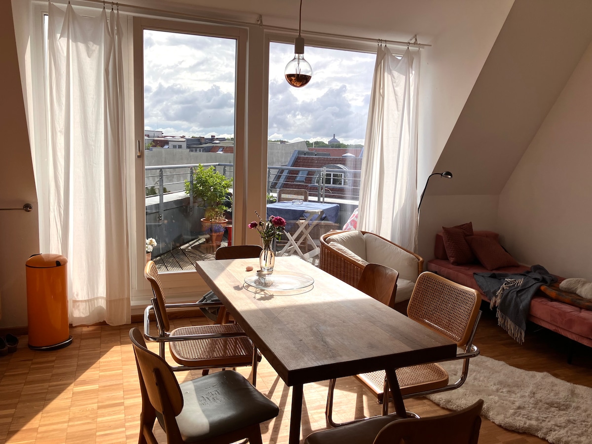 Cozy stay above a coffee roastery Stay in a peaceful and charming space above a small coffee roastery. Enjoy birdsong and fresh coffee in the morning (included!). The attic is fully equipped for your comfort. The subway is just 5 minutes away – central yet calm. Roastery tours available on request. I’m happy to answer any questions in advance!