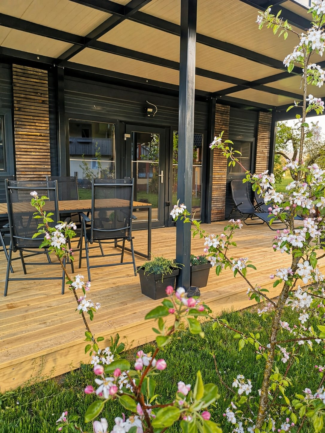 Vacation home with sauna and hot tub! Welcome to this quiet & stylish accommodation in the Grünjuwel country house in Himmelberg/Carinthia. On over 80 square meters, you can enjoy your self-catering holiday in a quiet location. Bedroom with double bed, open living room-kitchen with sofa bed (with slatted base, double bed size), large bathroom with corner bathtub, walk-in shower & double vanity and infrared cabin, cozy anteroom and beautiful wooden terrace. Room for max. 4 guests.