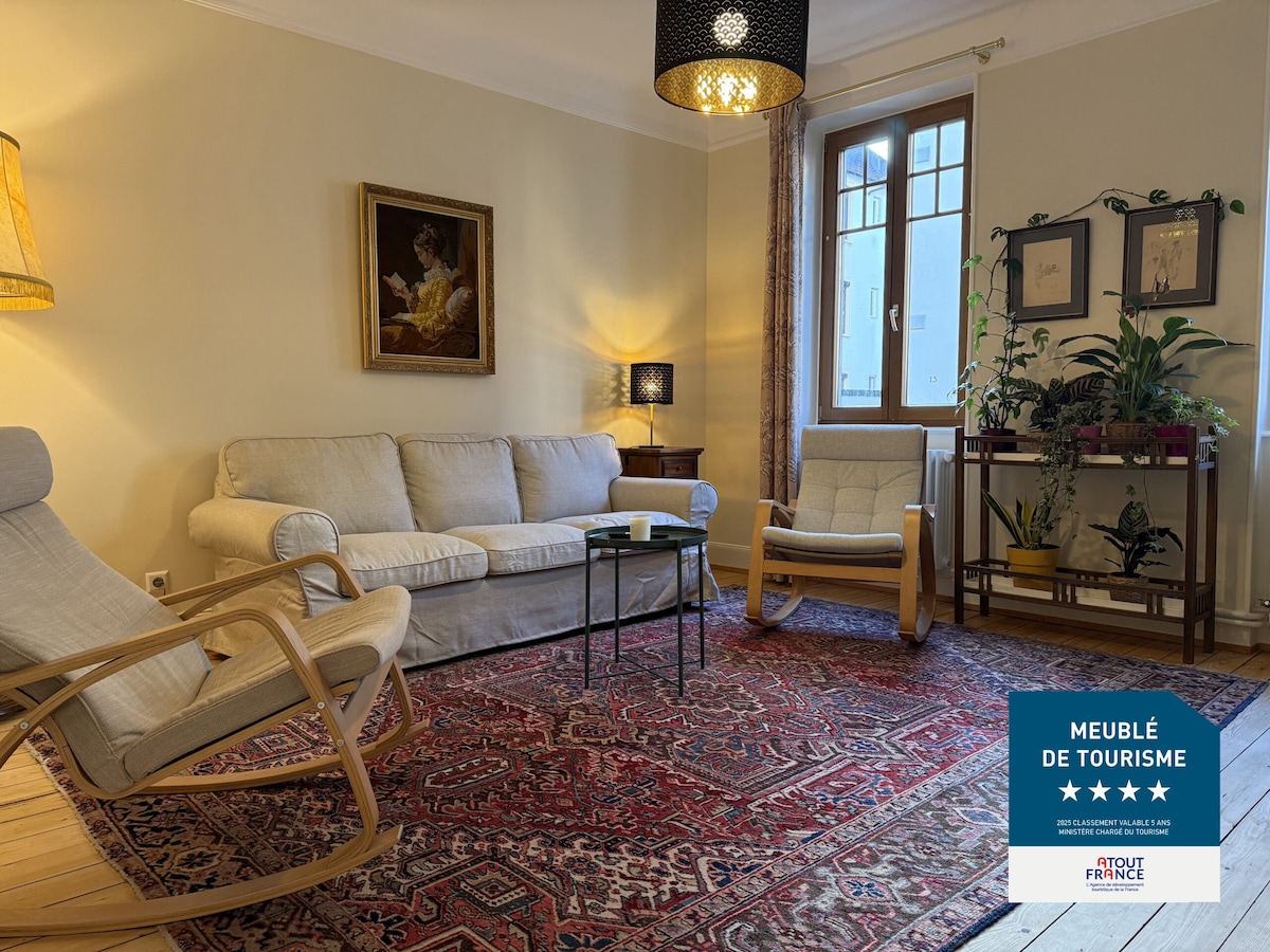 À 10 MINUTES EN BUS DE CENTRE VILLE DE STRASBOURG !!! “Le logement a été officiellement classé et a obtenu 3 étoiles. Garantit un haut niveau de confort et de service.” Un appartement moderne. Sa décoration raffinée et ses équipements complets, comme la cuisine fonctionnelle et le salon confortable, en font un lieu unique. Situé dans un emplacement central et bien desservi, il offre un équilibre parfait entre tranquillité et accès facile aux lieux incontournables de la ville de Strasbourg.