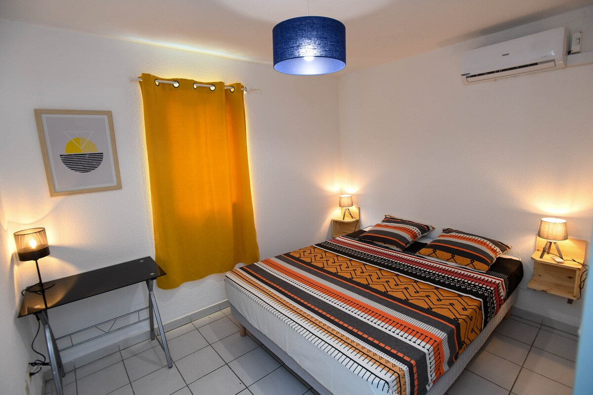 Comfortable accommodation with 2 air-conditioned bedrooms and fully equipped kitchen. Fitted balcony facing the Pitons du Carbet, 200m from the University and the School of Management and Commerce of Martinique. 1.5 km on foot or by car from the beaches of Madiana and Schoelcher, the Palais des Congrès and the Madiana Cinema, less than 3 km from the Casino Plazza Batelière, Fort de France and its historical and cultural sites. NB: soon résidencestamarin will offer you the rental of your vehicle.