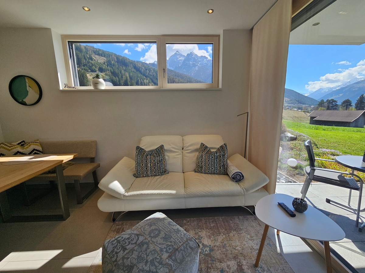 Approximately 40 m² suite plus 15 m² terrace in an absolute panoramic and quiet location at the entrance of the Stubai Valley! - First floor (only 2 residential units) - Southwest orientation - Underfloor heating - Ski boot dryer - Car parking space - Fully equipped designer fitted kitchen - 55" TV - Nespresso machine - Microwave - Leather sofa - Bathroom with walk-in shower - Separate bedroom, bed 180 x 200 cm - Very high quality amenities! Perfect for peace seekers, athletes and nature lovers; excellent starting point for countless excursions and sports activities;