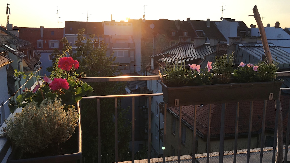 Gemütliches Maisonette Wohnung mit Allem was man braucht und einer tollen Aussicht. Die Wohnung befindet sich im Rückgebäude und ist angenehm ruhig. An der Grenze zwischen Maxvorstadt und Schwabing gelegen gibts es viele gute Restaurants, schöne Cafés, tolle Eisdielen, angesagte Bars und interessante Museen. Die meisten Sehenswürdigkeiten sind bequem zu Fuß erreichbar. Vom Münchner Hauptbahnhof sind es mit der U-Bahn U2 nur 3 Minuten bis zum Josephsplatz.