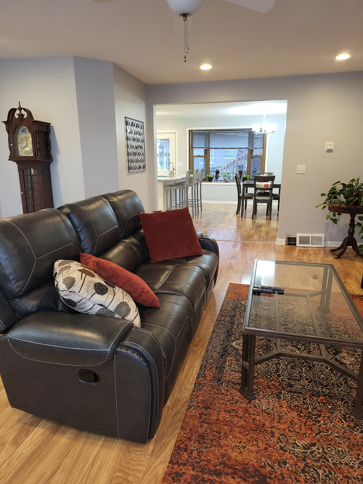 THIS IS NOT the whole home, but is the entire lower level, which feels like one of the units in a duplex. Cabinesque, roomy, close to almost anything you would need, cozy- these are a few words to describe it. You have your own private locked entrance from the garage, where you can park. The door between the levels is locked. This space boasts a gorgeous, new bathroom, new kitchen, huge flat screen tv, 2 large bedrooms, with the dining room and living room connected.