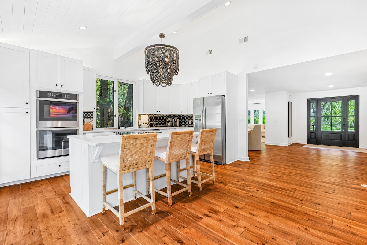 One of our newest homes, see our over 1000 *5*-star reviews. Nestled on a tranquil cul-de-sac on Deer Island - an island on an island - our enchanting Treehouse offers the ultimate getaway, surrounded by lush gardens and bamboo forests, stunning reclaimed wood floors, historic Savannah brickwork, and marvelous mid-century design and furnishings.