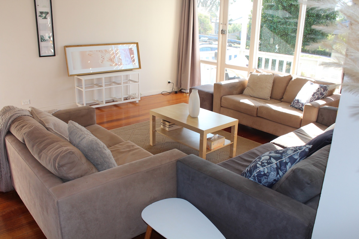 Poet’s Corner House on Phillip Island is a private retreat blending modern comfort with coastal charm. With two queen bedrooms, a bright loft lounge, and a cozy fireplace, it’s perfect for couples, families, or friends. Cook in the gourmet kitchen or outdoors with the BBQ and pizza oven, then unwind in the garden hammock under the stars. Just minutes from Surf Beach, local dining, and the Penguin Parade, it’s an inviting base to relax, recharge, and enjoy “Island Time.”