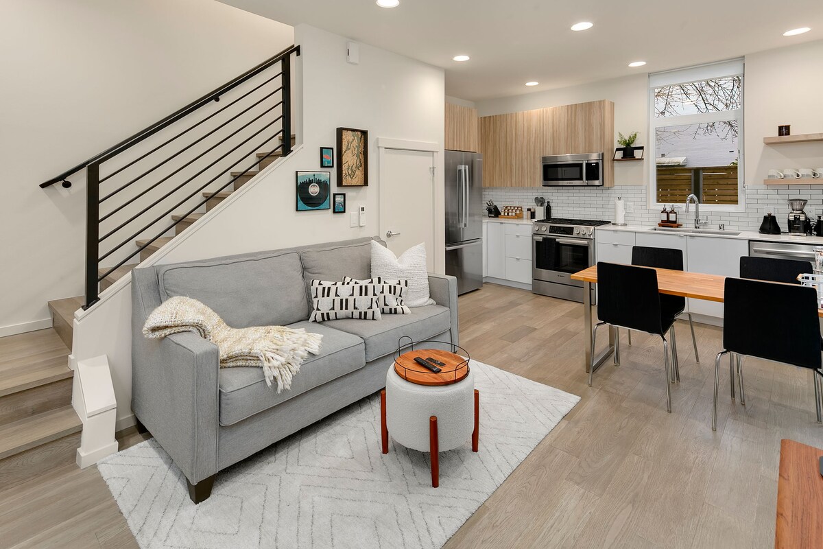 Built in 2021, this 1 bedroom (2 beds) light-filled home is in the heart of Seattle's vibrant Fremont neighborhood and is a perfect getaway for solo travelers, couples, or business travelers seeking comfort and convenience. Located in a quiet neighborhood, it's close to Woodland Park Zoo, Sunday Ballard Farmer's Market, Wallingford, and an easy drive to Downtown Seattle. Complete with Smart TVs, a fully equipped kitchen, washer/dryer, large shower with seat, and heated bathroom floors.