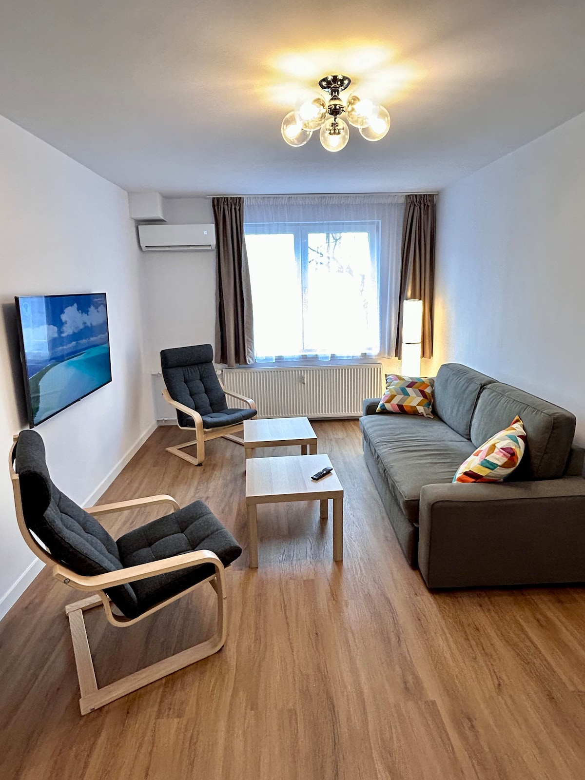 This newly renovated spacious over 80SQM flat is centrally located in a quiet dead end street, few steps away from Cismgiu Park. It is surrounded by cafes, restaurants, cool bars and night out places within walking distance. Also Old Town is in walking distance. The perfect match between a great location, well designed space and a fully equipped kitchen, will make from this flat a good choice for shorter or longer stay, for guest that are traveling for business, couples or families with kids.