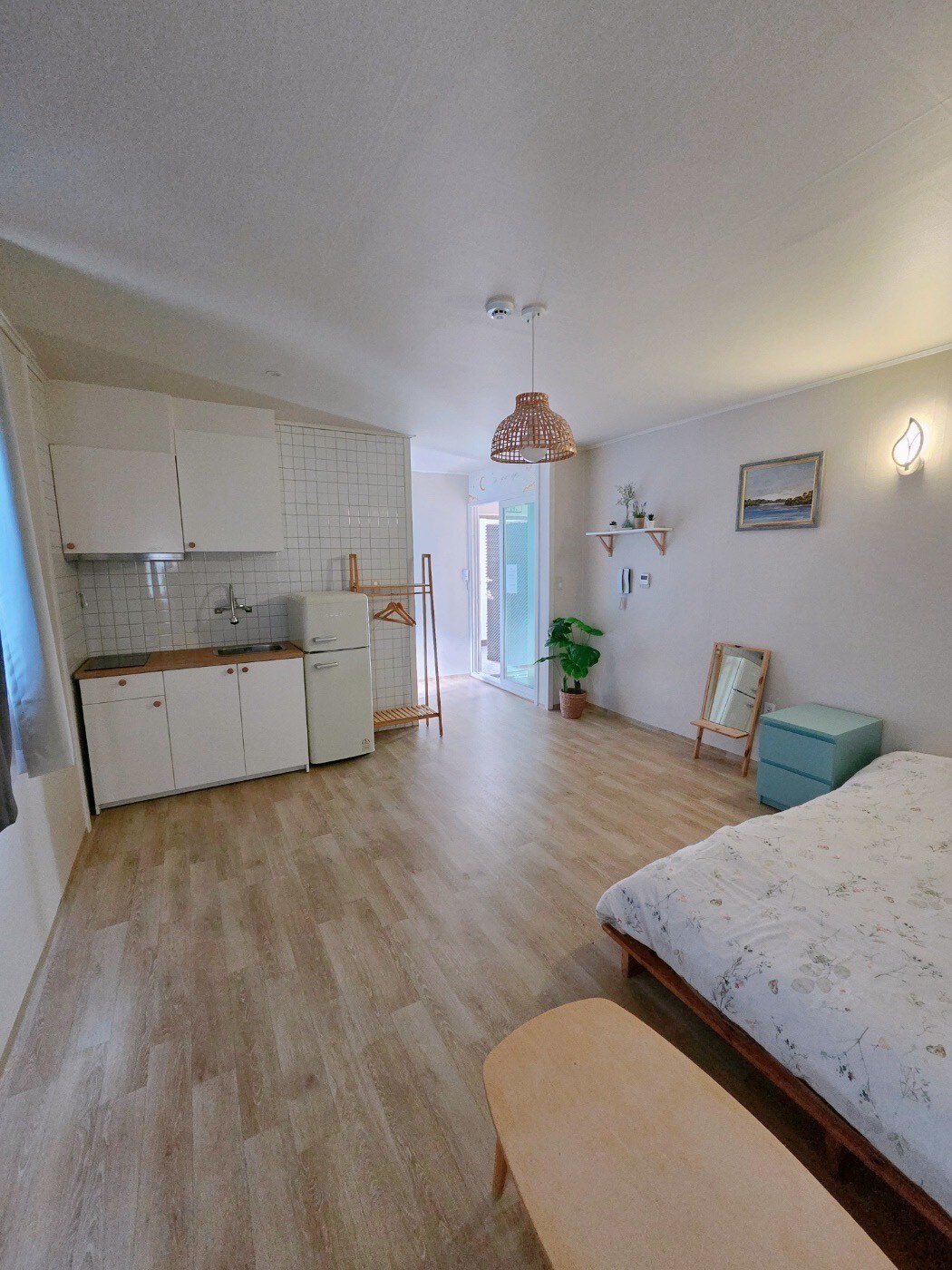 Doi's house is a small house located in the east of Jeju. In the spring of 2023, Jeju residents met the right land for the first time in 10 years and built two small houses. The inner house is where Doi's family lives, and the outer house is rented out. It's a small house with a living room, kitchen, and bathroom in one room, but if you're traveling for a week or less, you'll be able to stay comfortably. Then, have a warm and sweet time at Doine's house. I'm walking. -Small bookstores and shops (Bookstore Mago, Jeju Warehouse, Summer Stationery, Gago Cape Sewha) -Small restaurants: Al's Well (pasta)/Buckwheat's Hometown (buckwheat noodles)/Hojadon Gas (sandwich and donkass) and others -Sehwa Elementary and Middle School (exercise and walk in the wide playground) - Dongnyeok Library 5 minutes by car -Haenyeo Museum and Sehwa Oil Market (5th, 10th of every month) - Bijarim and Oreum (Darangshi/Akkwi/Dragon Eye) -Eastern National Sports Center (gym/indoor pool) - Blue Sehwa Sea, Starbucks, Nite (shaved ice) 10 minutes by car - Seongsan Ilchulbong Peak, Fritz (coffee), and Gwangchigi Beach - Jongdal Port and Jimi Peak to Udo - Earnest Milk (ice cream)