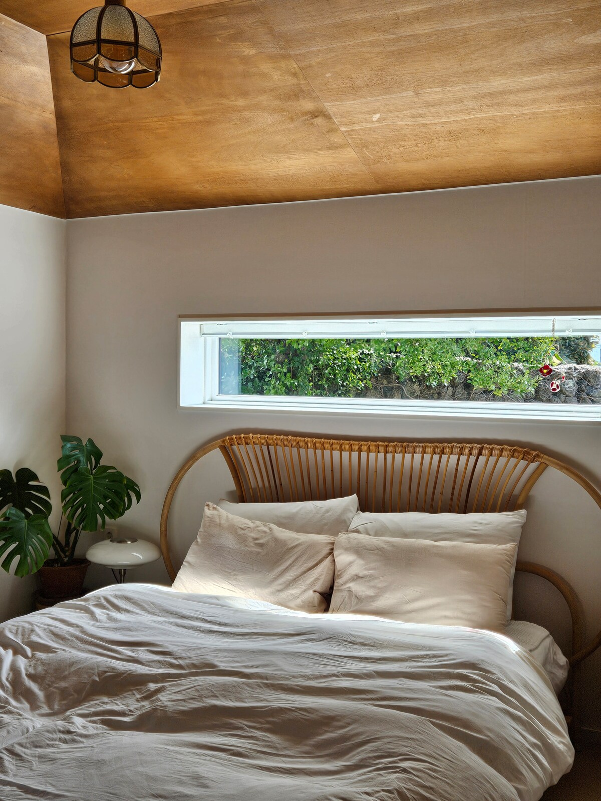 We remodeled our accommodation in March I didn't have a photo ready yet, so I uploaded only one of the representative photos Please keep in mind. (We will replace the photos after remodeling as soon as they are ready.) Ocean View Stay is a traditional stone house located inside a country village in Jeju. It's right by the beach, so you can enjoy the ocean sitting in the living room, deck, and lawn yard. Inside the house, there is one guestroom with one king-size bed.