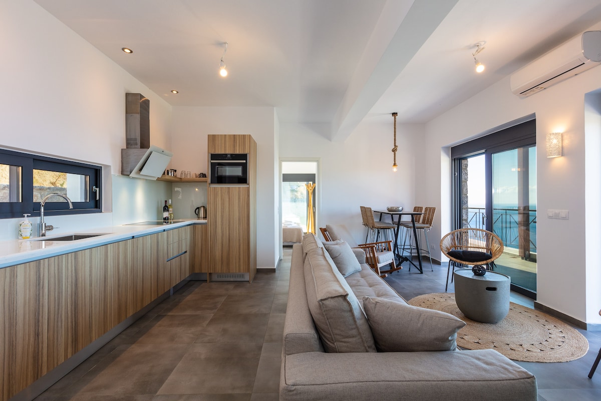 DÓMA. Modern Stone House with Panoramic Views in Chora Sfakion, South Crete. Discover the perfect blend of modern comfort and traditional charm in this newly renovated old stone house. Nestled at the highest point of Chora Sfakion, offering peace and privacy while being just a short drive from local tavernas, cafes, and the beach. Dóma offers a serene escape with breath-taking panoramic views and contemporary interiors, ideal for those looking to unwind in the beauty of South Crete.