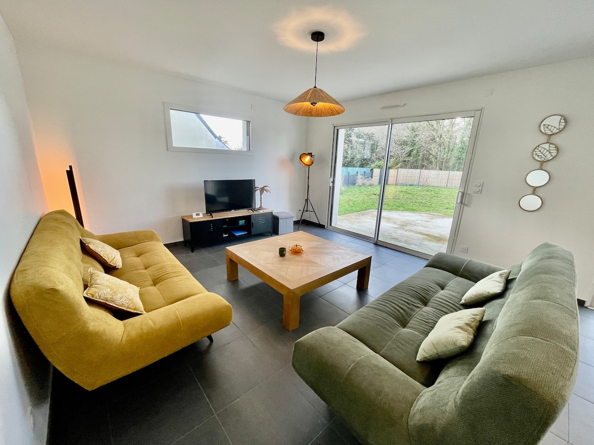 Welcome to our charming new single-story house, just 5 minutes from the Gulf of Morbihan, between Séné and Vannes. You will be delighted by the many hiking trails, including the famous GR34, ideal for scenic walks along the Gulf. A bike path at the foot of the house connects Vannes to the center of Séné, offering a great opportunity to explore the area by bike. All amenities are just 2 km away, for a comfortable and convenient stay.