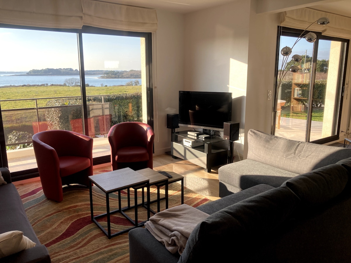 Independent apartment, on the first floor, with a magnificent view of the Gulf and direct access to coastal trails. Entry is via an external staircase leading to a small private terrace, where you can enjoy the beautiful sunsets! The apartment is located on the Port Anna Peninsula, at the end of a cul-de-sac, in a residential area. No TV, but Wi-Fi and above all, a view that you don't get tired of! 15 min from Vannes center.