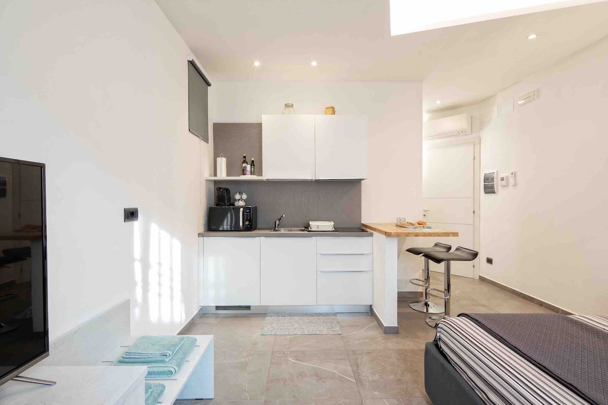 Completely renovated modern studio with kitchenette, large bathroom and separate laundry area. Large common courtyard with bike and motorcycle shelter, garden table/chairs, umbrella. Equipped with a smart TV, air conditioning and Wi-Fi. A 5-minute walk to the sea, located in a residential neighborhood, with ample free street parking. In the immediate vicinity there are bus and Metromare stops (50m), restaurants/pizzerias, bars, bakery, market, and bank. Ideal for couples or friends.