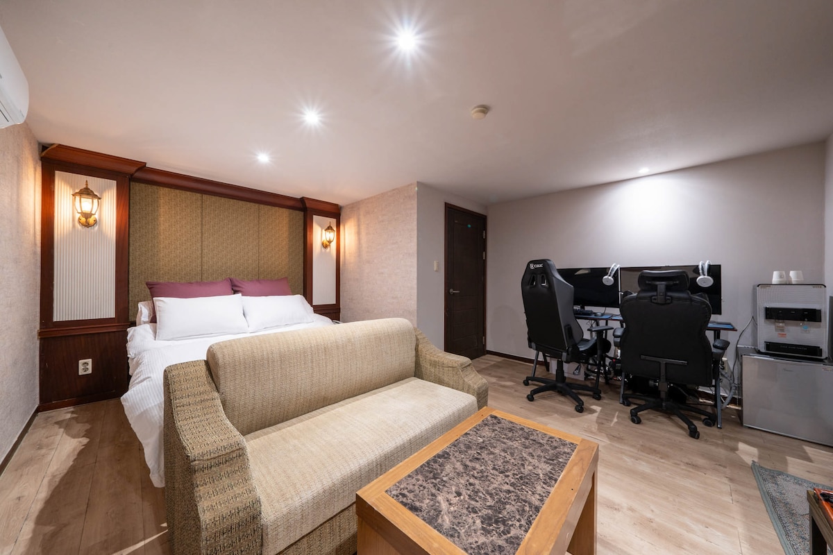 [Couple PC Room] Queen bed, business trips, long-term stays welcome