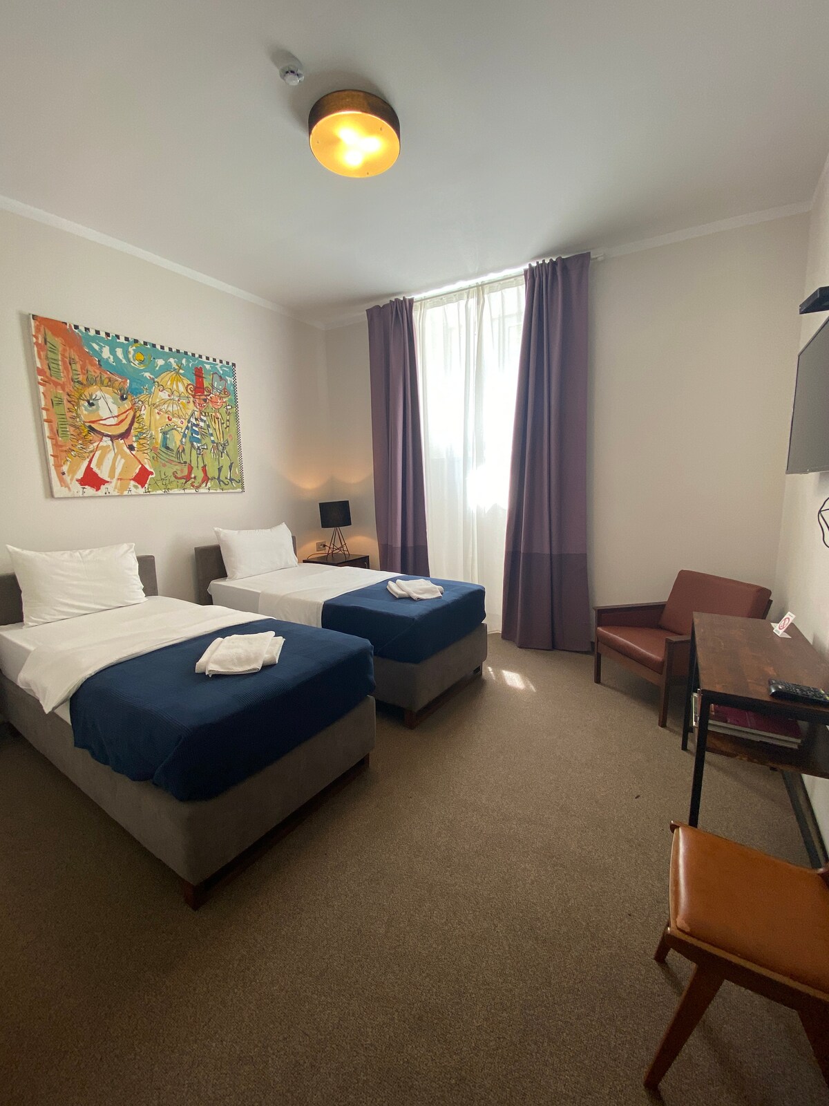 Staying in our stylish and colorful but perfectly fitted room, you will find all you need for your vacation in Novi Sad. Let the brightness come in or totally vanish in the calmness of our spacious room and comfort of bed that is tucked away in the Bohemian quarter of our town for a perfect rest.