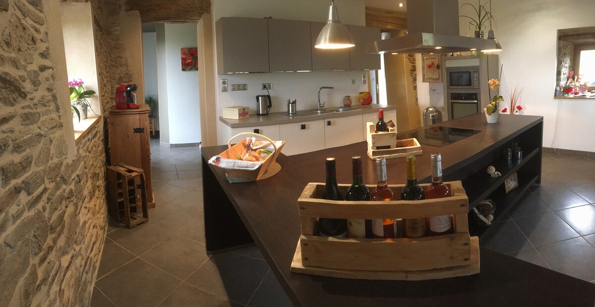 The very warm cottage is decorated in a chic and traditional way. Small wooden terrace with magnificent views of the valley. Fully equipped kitchen, wood stove, 1 bathroom (shower), 1 queen size double bed. Everything is tastefully renovated with eco-friendly materials. Reconnect with nature at this unforgettable escape. Please contact us before booking to be sure of what you want.