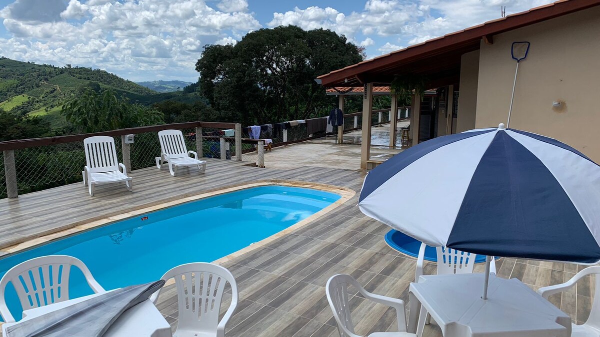 Beautiful house with a privileged view in a gated community 6 km from the city center. The condominium has a leisure area that includes courts, a swimming pool and a game room. The house is on a 2,800m² plot of land and features lots of greenery, a swimming pool, barbecue area, kiosk, garage, balcony with hammocks and pool table, kitchen, pantry, living room with fireplace and bedrooms that can accommodate up to 13 people. The place is very quiet. Perfect for those who want peace and quiet.